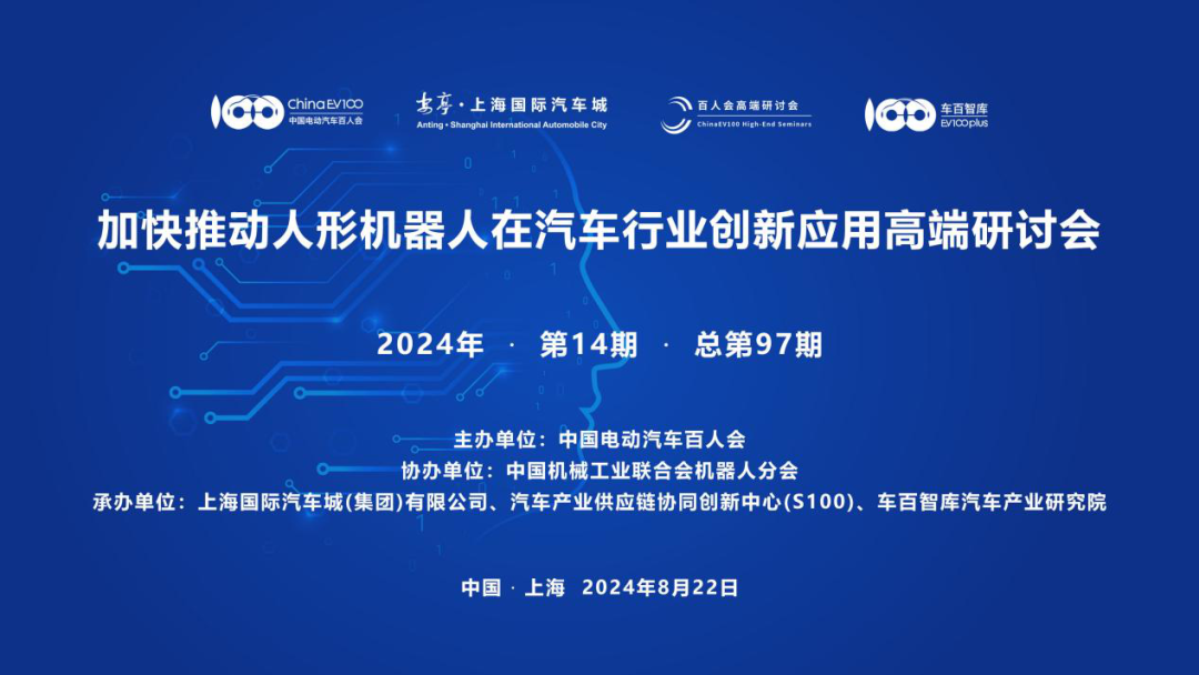 8月22日,由中国电动汽车百人会主办,中国机械工业联合会机器人分会协办,上海国际汽车城(集团)有限公司、汽车产业供应链协同创新中心(S100)、车百智库汽车产业米兰·(milan)中国官网共同承办的“加快推动人形机器人在汽车行业创新应用”高端研讨会,暨百人会2024年第14期(总第97期)高端研讨会,在上海嘉定顺利召开。研讨会由百人会副秘书长师建华主持。